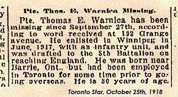 Digital gallery of Private Thomas Ernest Warnica