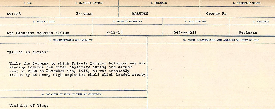 Unit/Regiment: 4th Canadian Mounted Rifles (2nd Central Ontario Regt.)