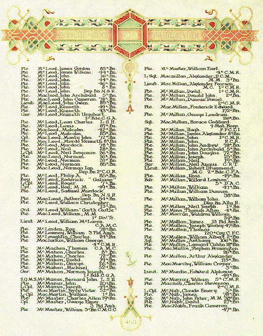 Page 463 of the First World War Book of Remembrance.