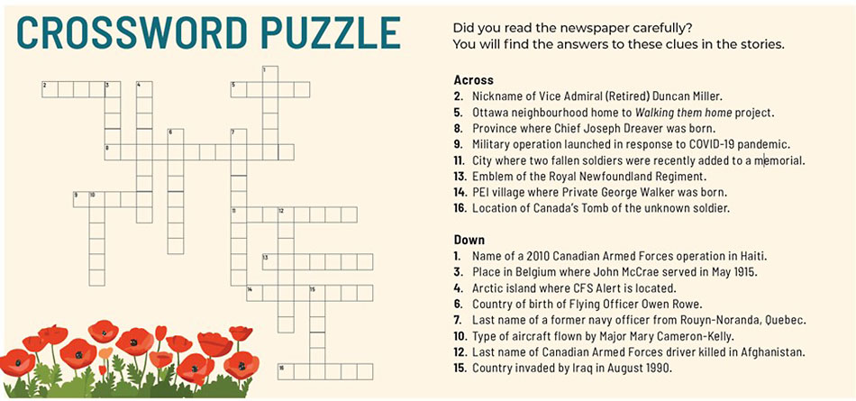 The Canada Remembers Times newspaper is for ages 12 to 18. It focuses on educating older students about Canada's rich military history and heritage.