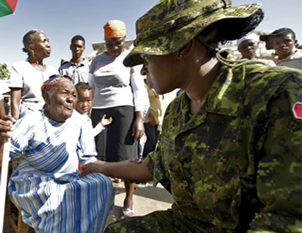 Canadian soldier helping in Haiti after the 2010 earthquake.