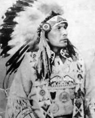 Chief Joseph Dreaver in his headdress and First Nations regalia.