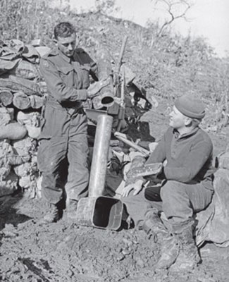 Winters can be freezing in Korea. January 1952—when this picture was taken—was particularly cold. Canadians had to be creative to keep warm on the front lines. These soldiers are showing off a homemade stove they made from an empty ammunition box and used shell casings. Stoves like this were popular but they could be unpredictable. Sometimes they even exploded!
