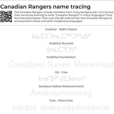 Learn to write and say Canadian Rangers in nine different Indigenous languages.