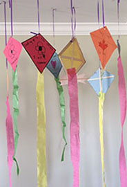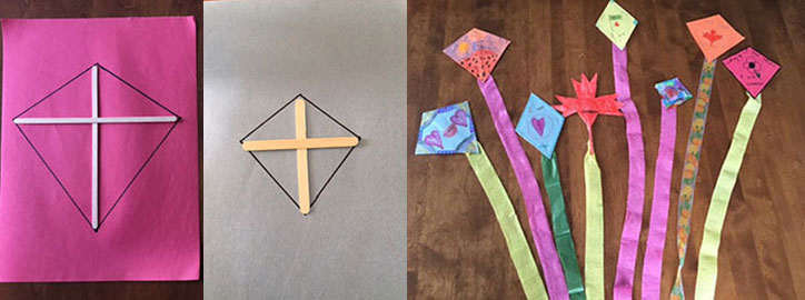 Step 5: Pass out the streamers, ribbons or long strips of tissue paper for the students to glue to the ends of their kites.