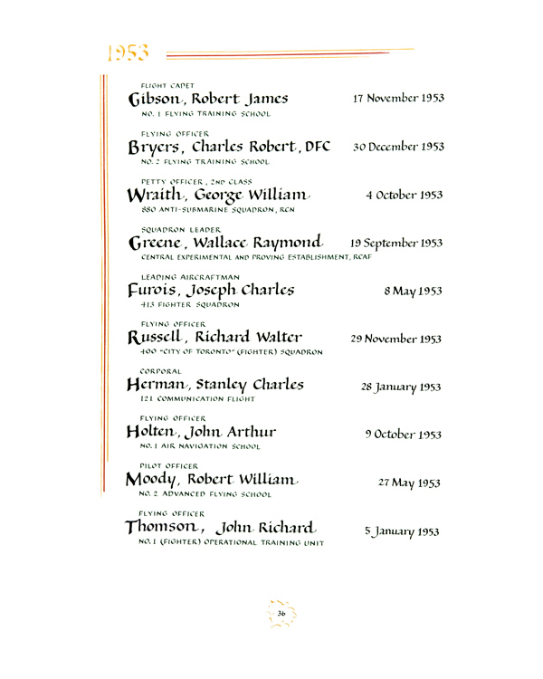 | 80002612 | Thomson | John Richard | January 5, 1953 | Flying Officer | No. 1 (Fighter) Operational Training Unit |