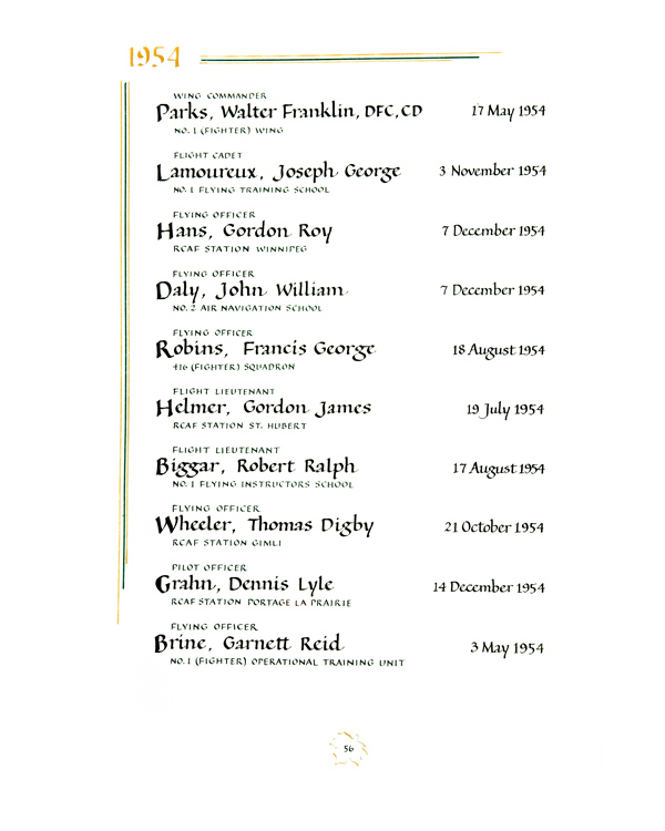 | 80002164 | Helmer | Gordon James | July 19, 1954 | Flight Lieutenant | RCAF Station St. Hubert |