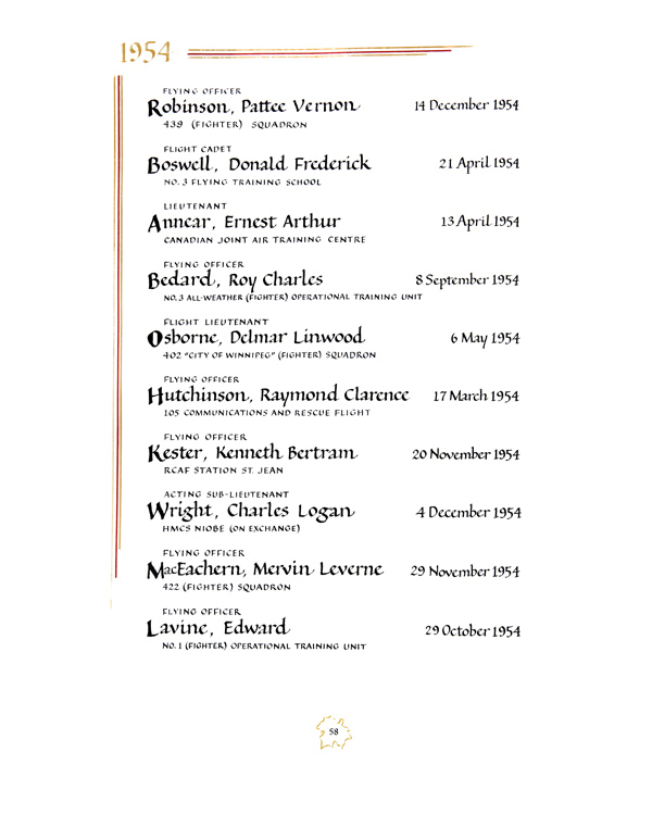 | 80001848 | Annear | Ernest Arthur | April 13, 1954 | Lieutenant | Canadian Joint Air Training Centre |