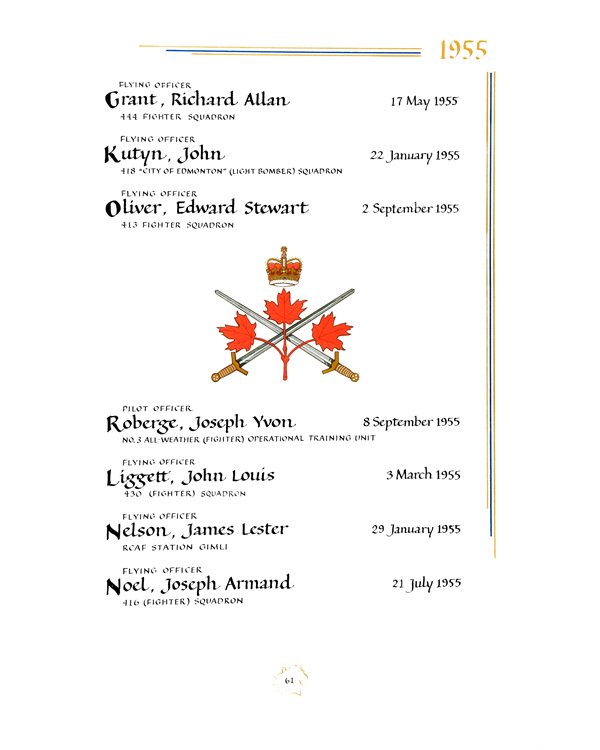 | 4512173 | Oliver | Edward Stewart | September 2, 1955 | Flying Officer | 413 Fighter Squadron |