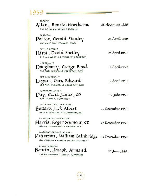 | 80002035 | Daugharty | George Boyd | April 2, 1959 | Lieutenant | 880 Anti-Submarine Squadron, RCN |