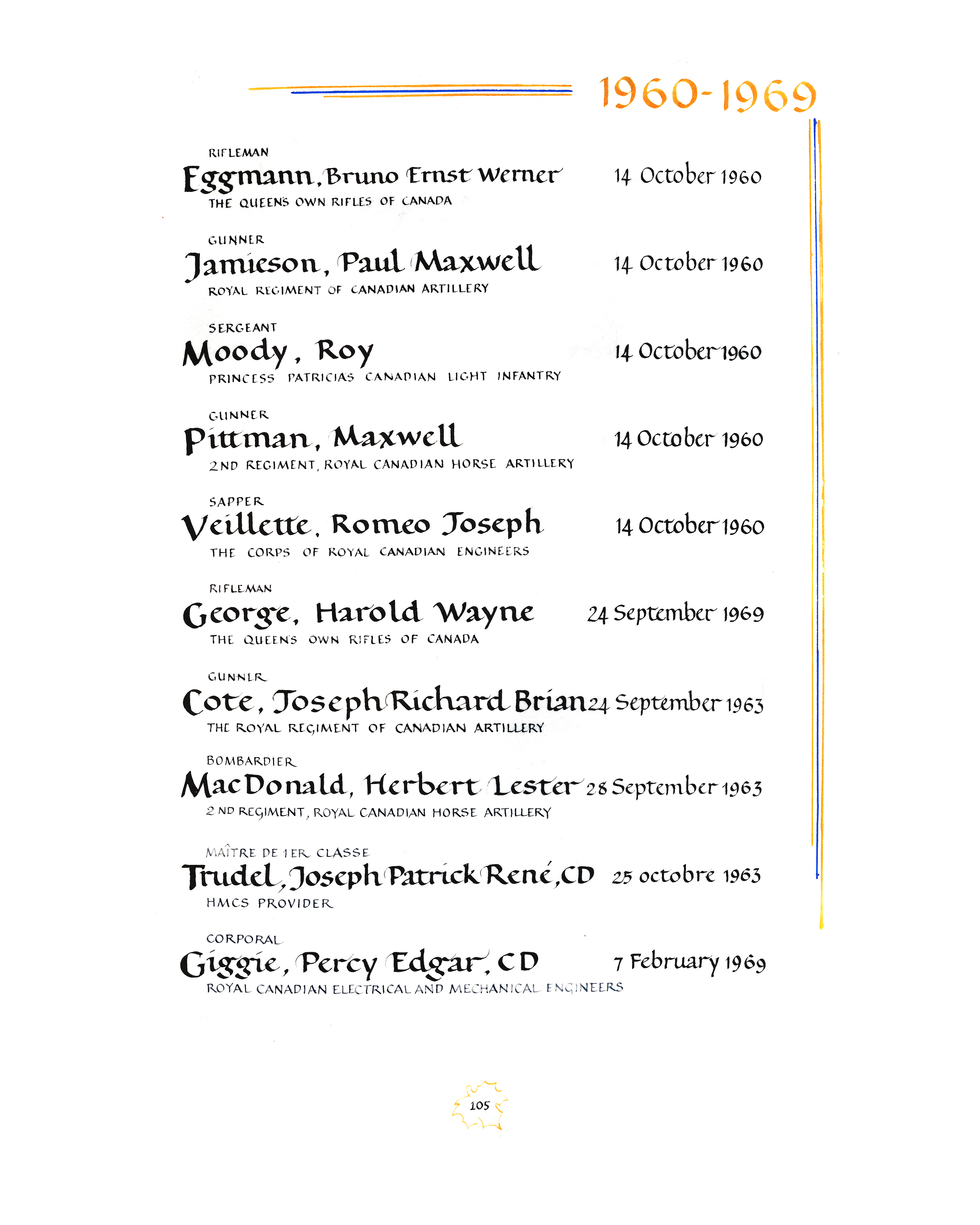 | 80004187 | Pittman | Maxwell | October 14, 1960 | Gunner | Royal Canadian Horse Artillery |