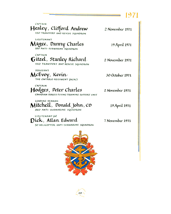 | 80002118 | Gitzel | Stanley Richard | November 2, 1971 | Captain | 440 Transport and Rescue Squadron |