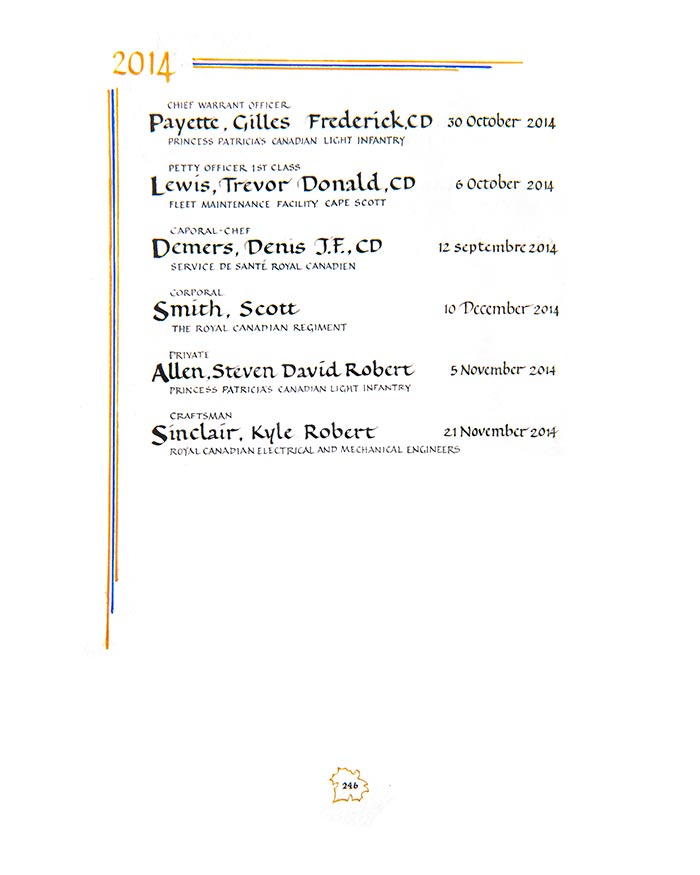 This page is displayed in the Memorial Chamber of the Peace Tower in Ottawa on the following days: