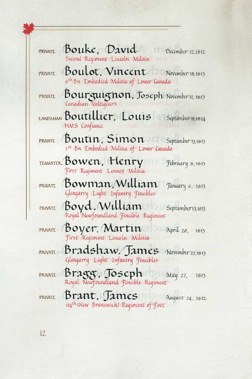 | Brant | James | August 24, 1812 | Private |