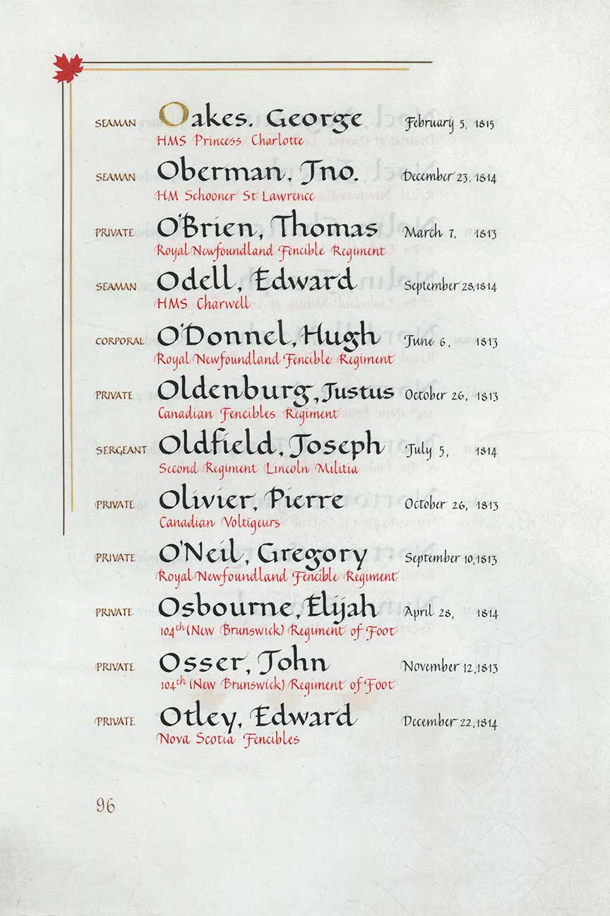 | Oldfield | Joseph | July 5, 1814 | Sergeant | ||