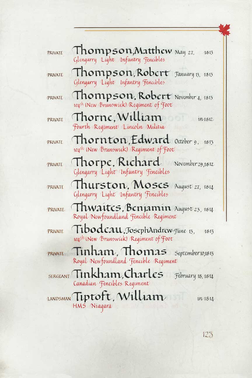 | Tibodeau | Joseph Andrew | June 13, 1813 | Private | ||