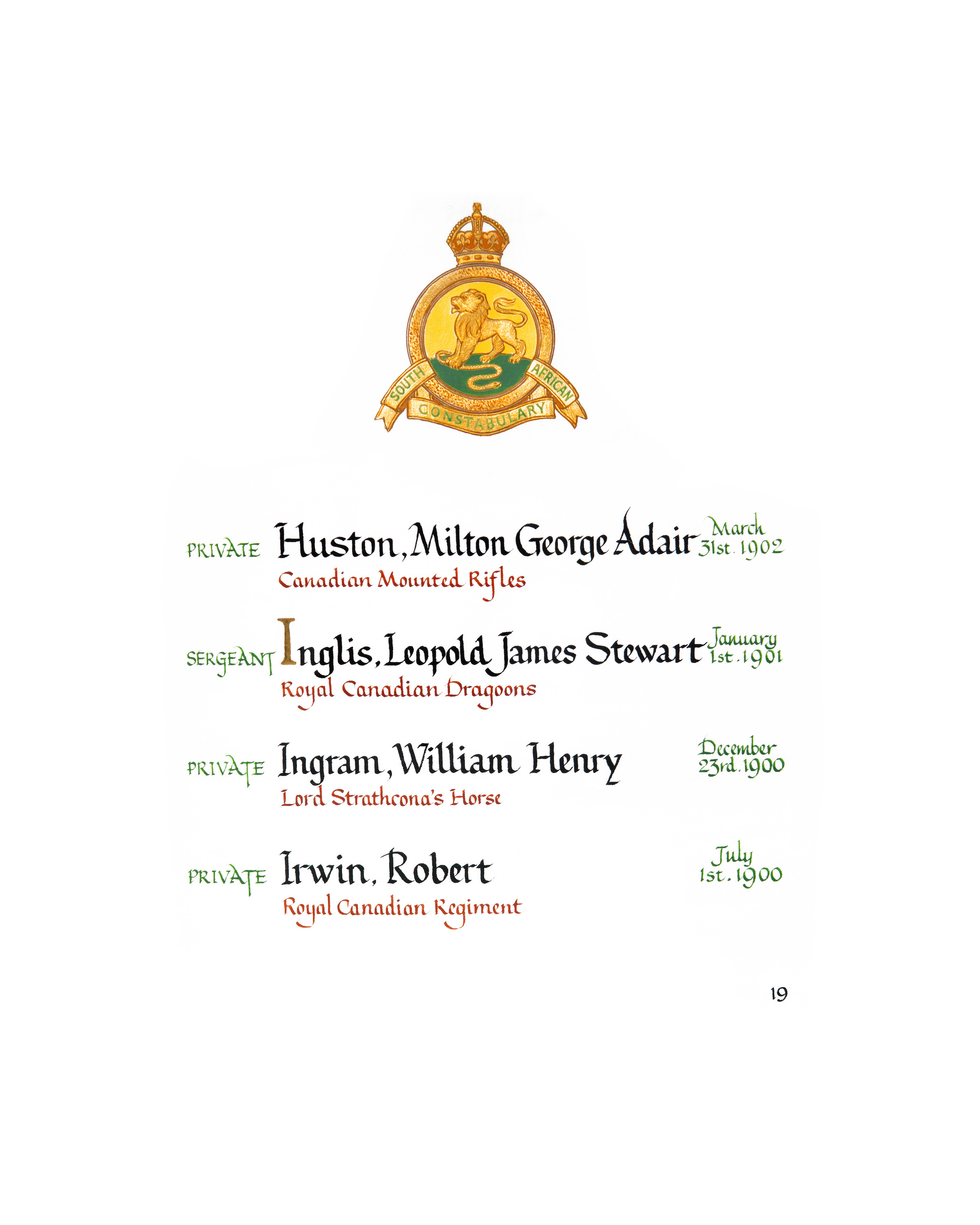 This page is displayed in the Memorial Chamber of the Peace Tower in Ottawa on the following days: