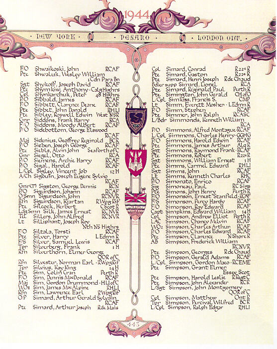 | 2928918 | Shykoff | Joseph David | January 1, 1944 | Sgt | RCAF |