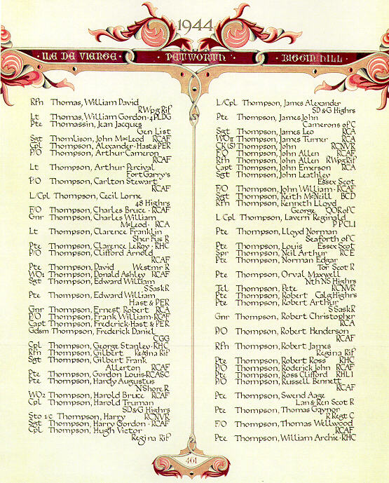 | 2642368 | Thompson | Clarence LeRoy | January 1, 1944 | Pte | RHC |