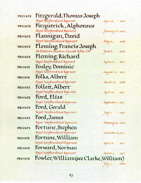 | 722274 | Fitzgerald | Thomas Joseph | April 14, 1917 | Private | Royal Newfoundland Regiment |