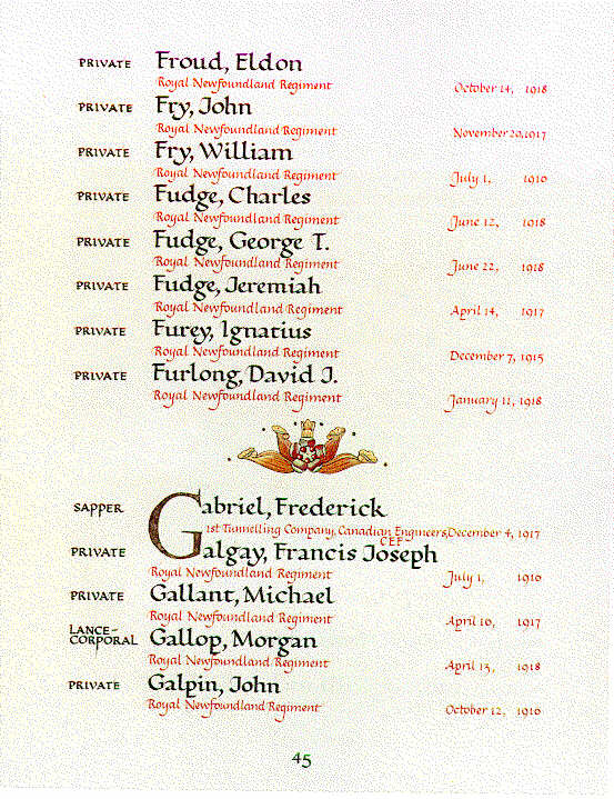 | 460439 | Fudge | George T. | June 22, 1918 | Private | Royal Newfoundland Regiment |