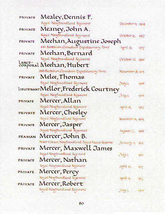 | 460464 | Mealey | Dennis F. | December 6, 1919 | Private | Royal Newfoundland Regiment |