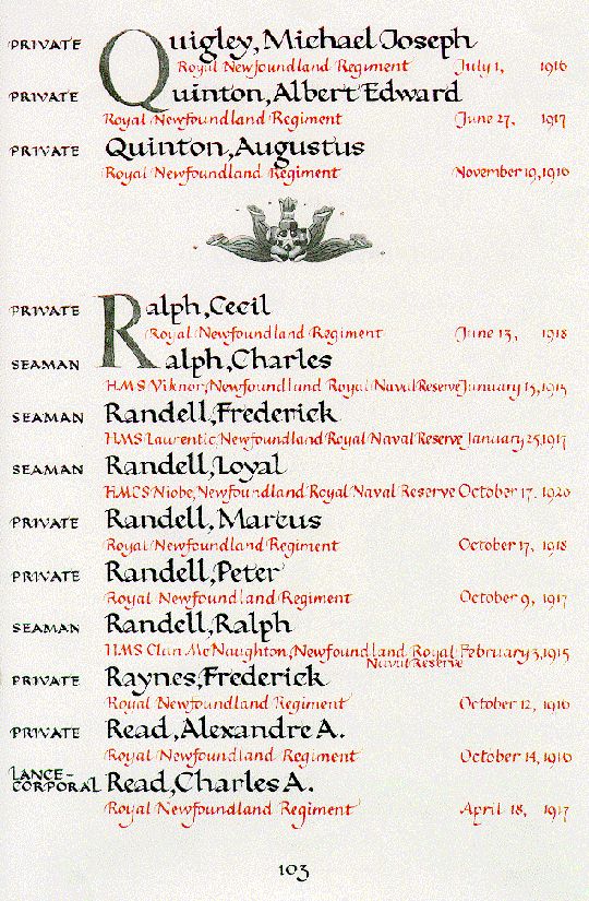 | 460415 | Quinton | Albert Edward | June 27, 1917 | Private | Royal Newfoundland Regiment |