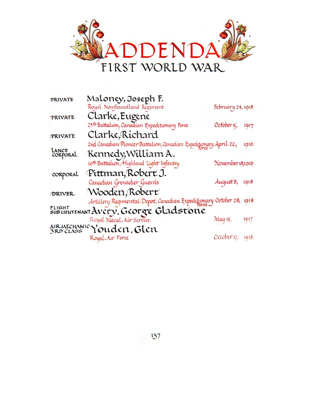 | 80001355 | Maloney | Joseph F. | February 24, 1918 | Private | Royal Newfoundland Regiment |