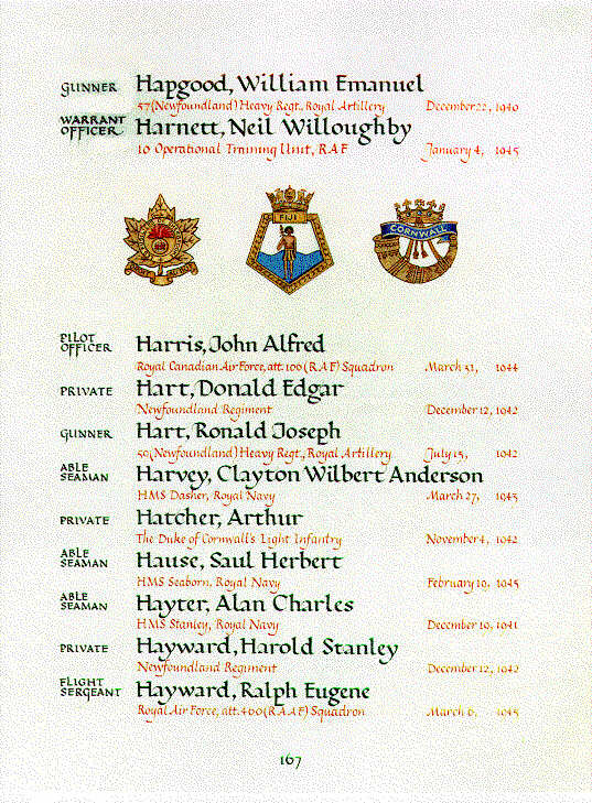 | 2954137 | Hart | Donald Edgar | December 12, 1942 | Private | Newfoundland Regiment |