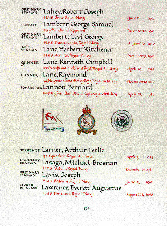 | 2954147 | Lambert | George Samuel | December 12, 1942 | Private | Newfoundland Regiment |