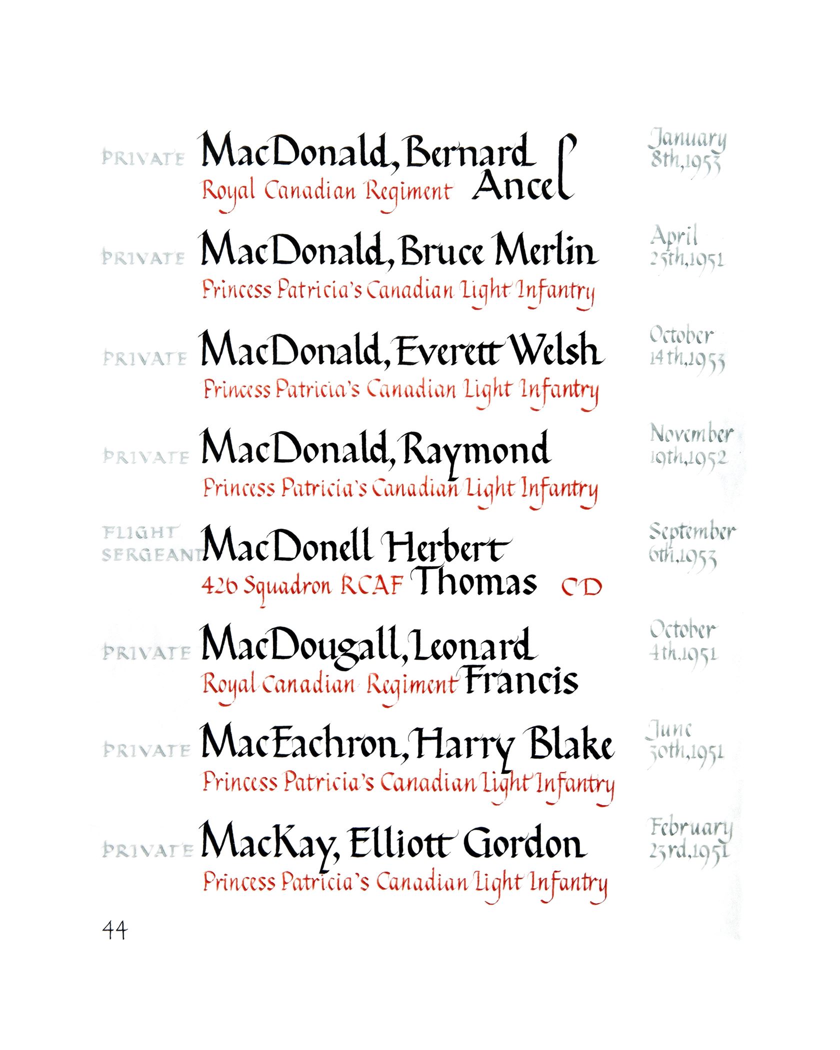 | 80000268 | MacDonald | Everett Welsh | October 14, 1953 | Private | Princess Patricia's Canadian Light Infantry |