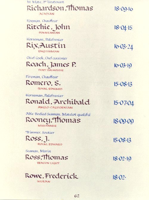 | 3032036 | Richardson | Thomas | September 16, 1918 | 1st Mate | Acadian |