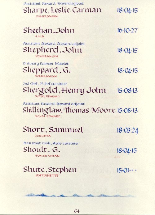 | 3032692 | Shillinglaw | Thomas Moore | August 13, 1915 | Assistant Steward | Royal Edward |