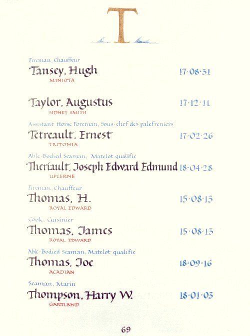 | 2969099 | Thomas | Joe | September 16, 1918 | Able-Bodied Seaman | Acadian |