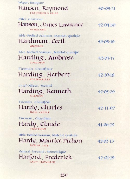 | 80000976 | Harding | Kenneth | May 29, 1942 | Chief Officer | Glencoe |