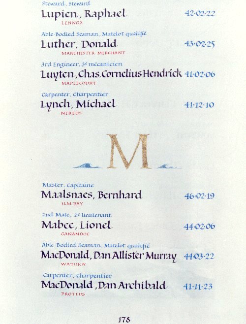 | 2639997 | MacDonald | Dan Allister Murray | March 22, 1944 | Able-Bodied Seaman | Watuka |