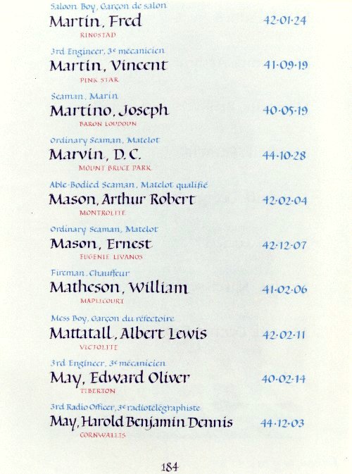 | 2640176 | Martin | Vincent | September 19, 1941 | 3rd Engineer | Pink Star |