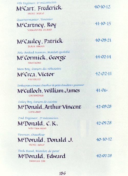 | 2640000 | McDonald | Edward | July 28, 1942 | Deck Hand | Trawler Ebb |