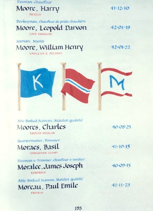 | 2640279 | Moores | Charles | August 25, 1940 | Able-Bodied Seaman | Empire Merlin |