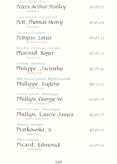 | 2640519 | Phillips | Laurie James | January 19, 1942 | General Servant | Lady Hawkins |