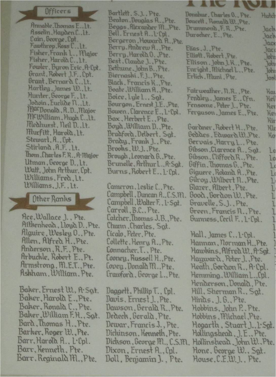 1st Battalion Stormont Dundas and Glengarry Highlanders Second World War Roll of Honour