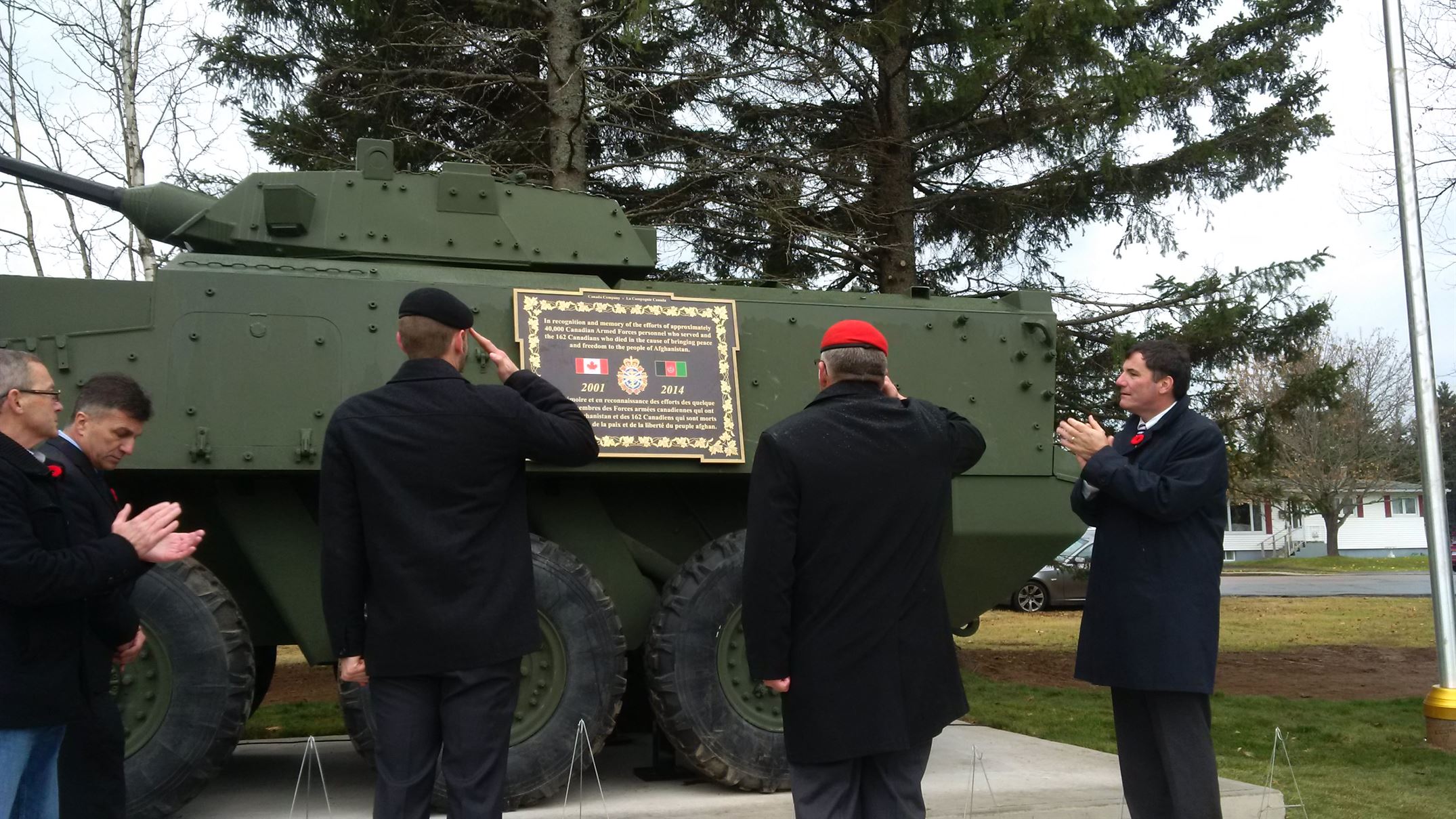 The LAV III Monument was installed as part of a new Veterans Park development adjacent to the Town Hall. The monument was unveiled on November 11, 2016.