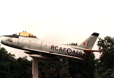 It was assembled near Montreal and first flew on May 6, 1954. Six days later, it was an operational fighter/trainer at CFB Clinton for Canadian pilots and ground crews to master radar. In April 1957, the aircraft was stationed to CFB Chatham and used to train pilots in battle scenarios. By 1970, it was decommissioned and sold to a war surplus store near the Chatham base. Three members of the local Air Force Association 428 Wing, Alf Dawson, Gord Wilson and Vince Strano, purchased the aircraft for a memorial at a cost of $4,500.