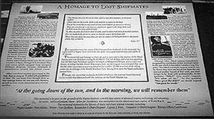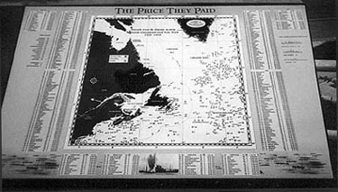 Plans for this memorial were initiated by the members of the Canadian Merchant Navy Association at St. John's. Contributions came from many sources, the main designer and financier being the Johnson Family Foundation from St.John's. This monument was erected to the Allied Merchant Navy men and women who lost their lives in World War II. On the top of the black marble-topped monument are the names of 332 men and one woman who lost their lives. It contains the crests of a number of Allied Countries and the names of 333 Newfoundlanders. The monument is erected between two buildings at the Marine Institute in St. John's, Newfoundland. In the clear view beyond is the St. John's Narrows through which many of the merchant seamen sailed to their deaths. This harbour was the home port for naval vessels which provided convoy protection on the North Atlantic. This port was a safe haven for torpedo-damaged ships. Crews from torpedoed ships of the Allied Merchant Navies were landed here and found a haven of rest until they returned to their home ports or shipped out as crew on other ships. The Merchant Navies operated throughout the world long before the outbreak of the Second World War. With vessels manned by highly trained officers and crew, they provided efficient, professional service. At the outbreak of each of the World Wars, Merchant Navies were commandeered to fill a new and pressing need. In 1939, merchant vessels from the allied nations, were brought together to form the Allied Merchant Navy. Many of the officers who served in the Merchant Navy, particularly those from Commonwealth countries, later transferred to the regular forces. In fact, in the Canadian Navy in the Second World War, most senior officers had come through the ranks of the Merchant Navy. Merchant Navies played a critical role in both World Wars, transporting war materials, troops, fuel and ammunition throughout the world. The ships were also called on to assist in evacuation and troop landings. They battled the treacherous North Atlantic, and German U-Boats which lay in wait to sabotage their missions. An estimated 60,000 Allied Merchant Navy men and women lost their lives assuring a reliable flow of goods across the Atlantic. Who were the Merchant Marines? They were an equally important arm of the Allied forces who risked their lives and many lost them along with their comrades in the navies and air forces. Most merchant crews were made up of older men, and young boys, some as young as 15 years of age. A small number of women served with the Merchant Navy. These crews were given no formal training in survival or shipboard duties. Through their endurance and tenacity, they nonetheless survived five years of North Atlantic gales and U-boat attacks. These brave men operated ships alongside on board navy DEMS personnel. The Merchant Navy was a volunteer organization. Without uniforms to identify them on shore, these crews did not enjoy the special treatment and respect that uniformed officers could expect. The Merchant navies kept a constant supply of food and essential goods traveling across the ocean throughout the Wars. Crews on tankers and ammunition ships worked daily with the knowledge that they had no chance of surviving a torpedo attack. On Remembrance Day every year, war veterans are honoured and those who sacrificed their lives. The merchant Navy is seldom included in these services, however, due in part to the non-military status of the Navy. It is time to recognize the contribution made to the war by the Merchant Navy.