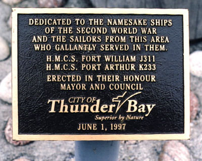 Erected by the Thunder Bay Naval Monument Committee, this memorial, known as "The Anchorage" is dedicated to the war dead suffered by the Royal Canadian Navy and the Merchant Navy during the Second World War as well as to those who survived.
