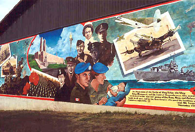 Painted by a local artist and unveiled in November 1999, this memorial is dedicated to the men and women of the military who fought in all of Canada's wars as well as the peacekeepers of today.