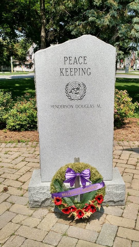 In 2001, elements from the original Belleville Cenotaph were incorporated into the centre piece of the new cenotaph. It is flanked to the left by a First World War stone, a peacekeeping stone and the Thurlow Cenotaph. A Second World War stone, a Merchant Navy/Korean War stone and an Afghanistan stone flank the right.