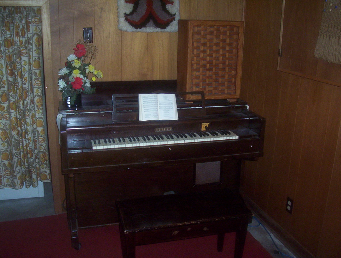 This electric organ and plaque in Britannia United Church are dedicated to the members of the congregation who gave their lives during the Second World War. Their names were added to the Britannia Church honour roll.