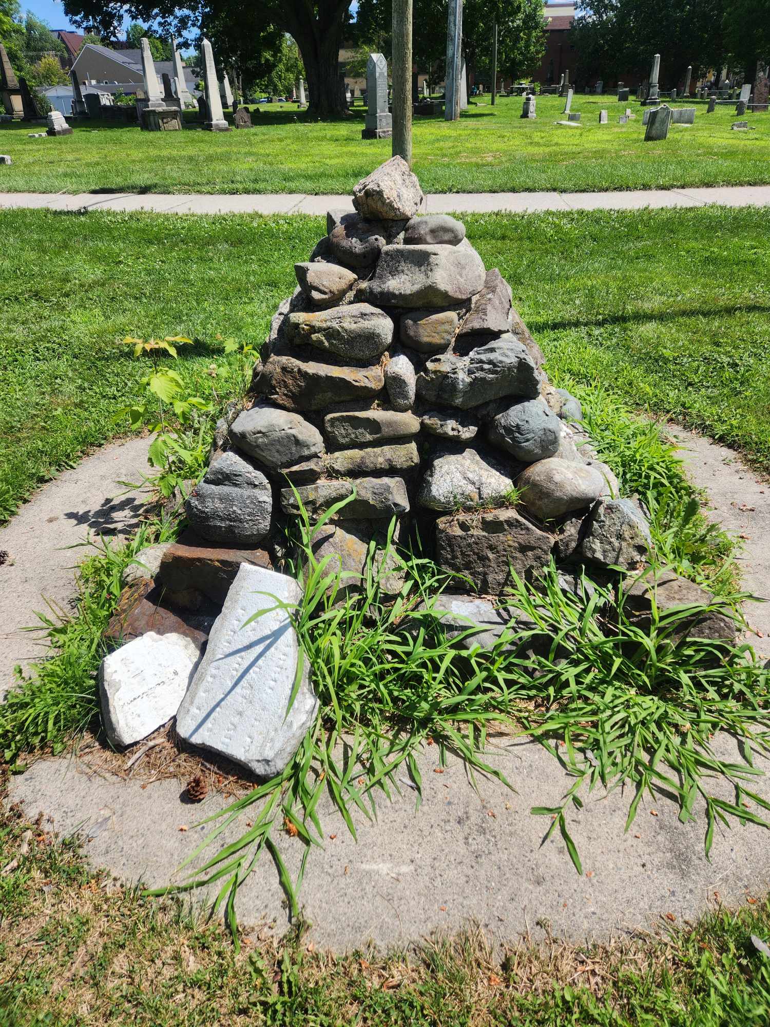 This is the original memorial dedicated to the British Soldiers who served in Fredericton. It was erected by members of the York Sunbury Historical Society in 1934. The cairn is dedicated to members of the British Fredericton Garrison buried in the cemetery, many with unmarked graves. There were 24 different British infantry regiments served in Fredericton and contributed greatly to the development of the town.