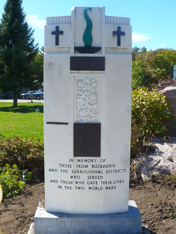 The Buckhorn Cenotaph was constructed in 1945-46 in memory of those who gave their lives in the two World Wars and was erected in 1946 by the local Women's Institute.